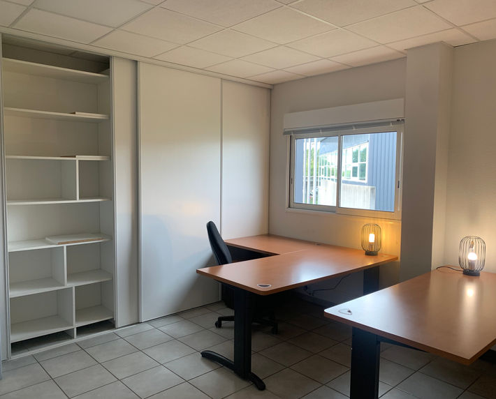 - Coin bureau avec son rangement, chaise et corbeille à papier